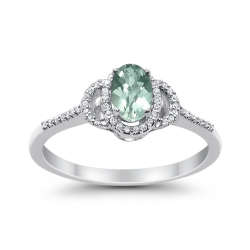 10K White Gold Oval Green Amethyst .53ct Diamond Ring Size 6.5