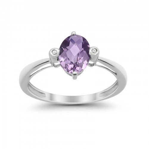 10K White Gold Oval Shape Amethyst 1.12ct Diamond Ring Size 6.5