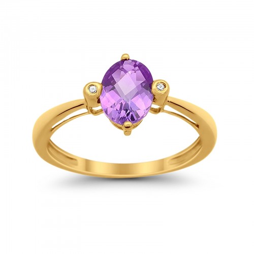 10K Yellow Gold Oval Shape Amethyst 1.1ct Diamond Ring Size 6.5