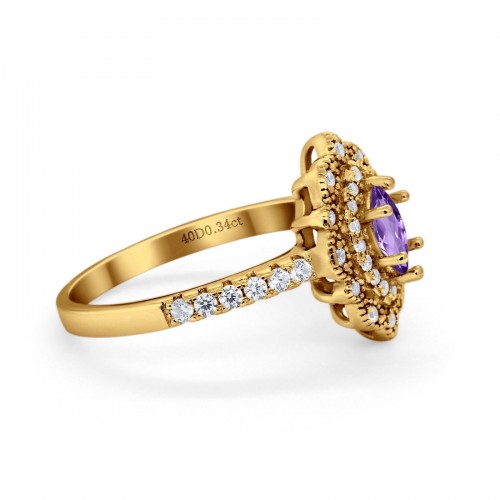 14K 0.54ct Yellow Gold Natural Amethyst G SI Diamond Engagement Ring Size 6.5
