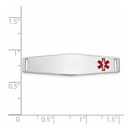 14K White Gold 36x Centered Red Epoxy Enameled Soft Diamond Shape Medical ID Plate # 818 9mm