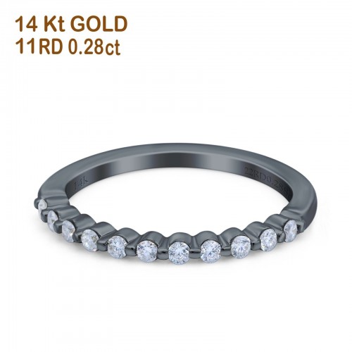 14K Black Gold 0.28ct Diamond Half Eternity Round 2mm Stacking Band Engagement Ring Size 6.5