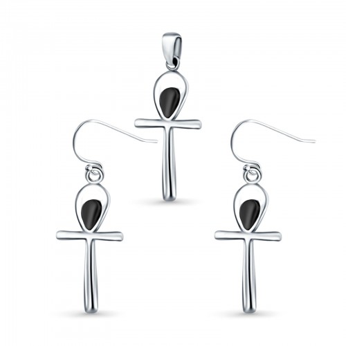 Round Black Onyx Celtic Knot Heart Fishhook Earring 925 Sterling Silver