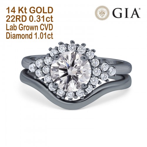 14K Black Gold Art Deco Round GIA Certified 6.5mm D VS1 1.01ct Lab Grown CVD Diamond Engagement Wedding Ring Size 6.5