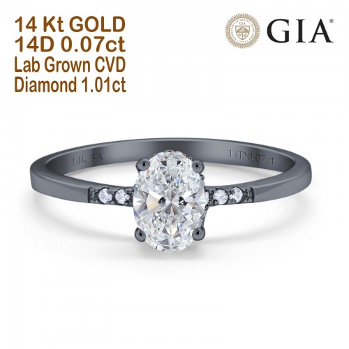 14K Black Gold Oval Art Deco 8mmx6mm D VS2 GIA Certified 1.01ct Lab Grown CVD Diamond Engagement Wedding Ring Size 6.5