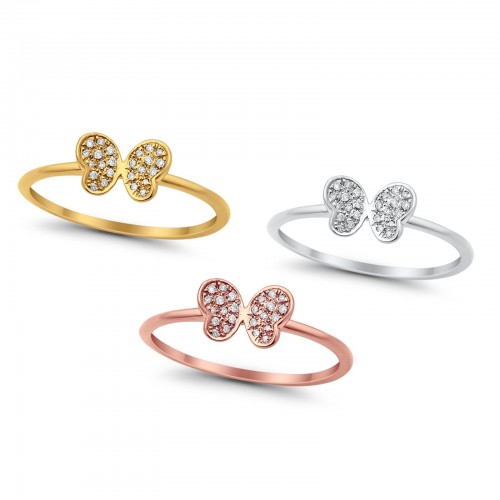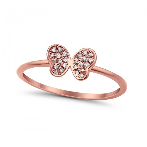 14K Pave Set .05ct Diamond Rings Rose Gold Butterfly Size 6.5