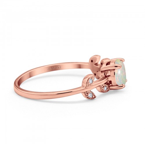 14K Rose Gold 0.03ct Round Natural White Opal G SI Diamond Engagement Ring Size 6.5