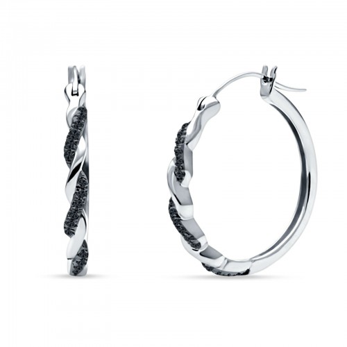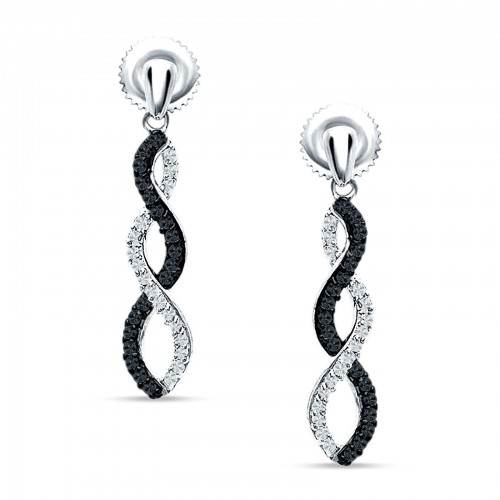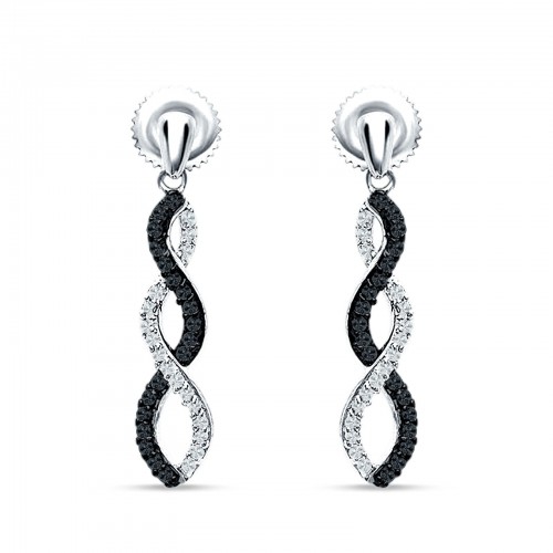Twisted Infinity Stud Earring Black CZ 925 Sterling Silver Wholesale 23mm