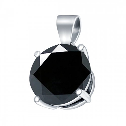 Round Simulated Black CZ Charm Pendant 925 Sterling Silver (8mm)