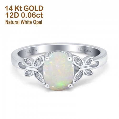 14K Rose Gold 0.06ct Oval 8mmx6mm Butterfly Accent G SI Natural White Opal Diamond Engagement Wedding Ring Size 6.5