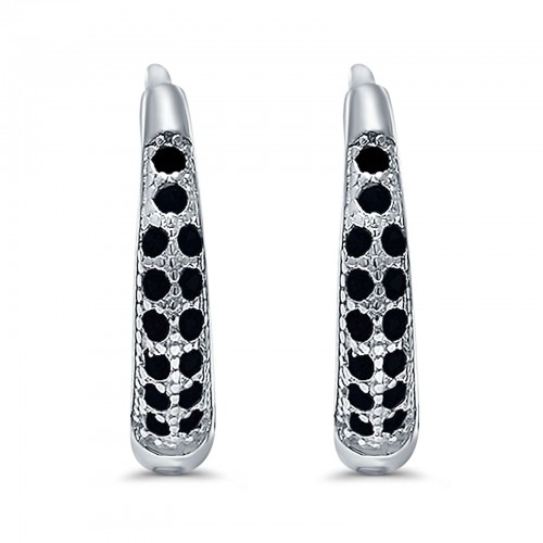Curved Hoop Earrings Black CZ 925 Sterling Silver Wholesale 20.7mm