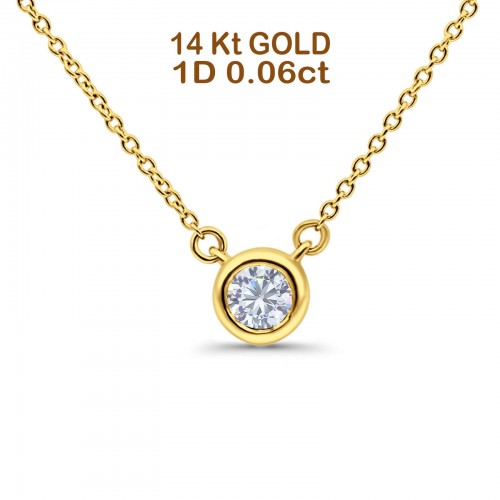 14K Rose Gold 0.06ct Round Shape Diamond Bezel Solitaire Pendant Chain Necklace 18″ Long