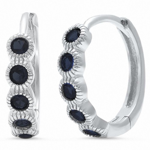 Huggie Hoop Earring Round Bezel Simulated Black CZ Stone 925 Sterling Silver