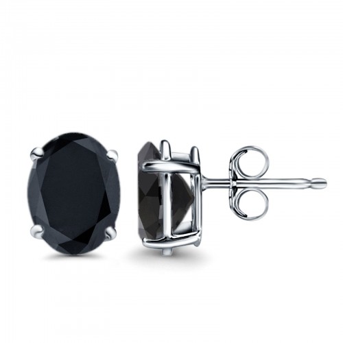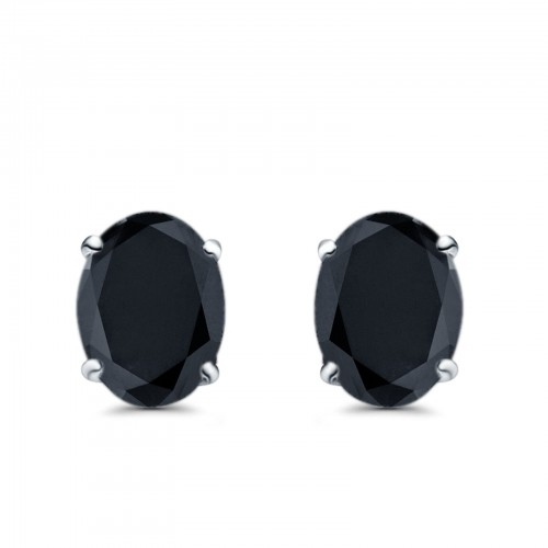 Art Deco Oval Wedding Bridal Solitaire Stud Earrings Simulated Black CZ 925 Sterling Silver-7mmx5mm