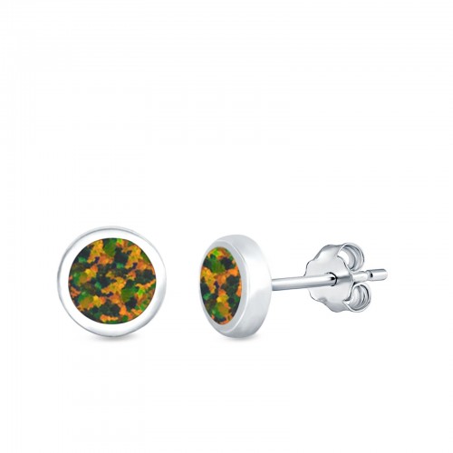 Round Stud Earrings Lab Created Black Opal 925 Sterling Silver (5mm)