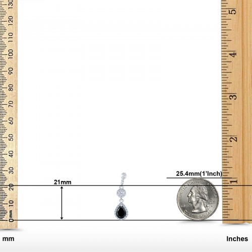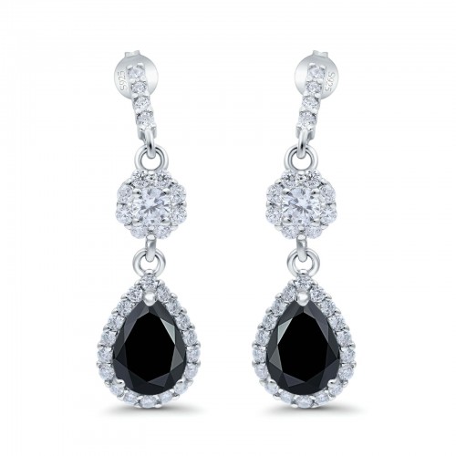 Halo Dangle & Drop Earrings Pear Simulated Black CZ 925 Sterling Silver