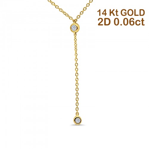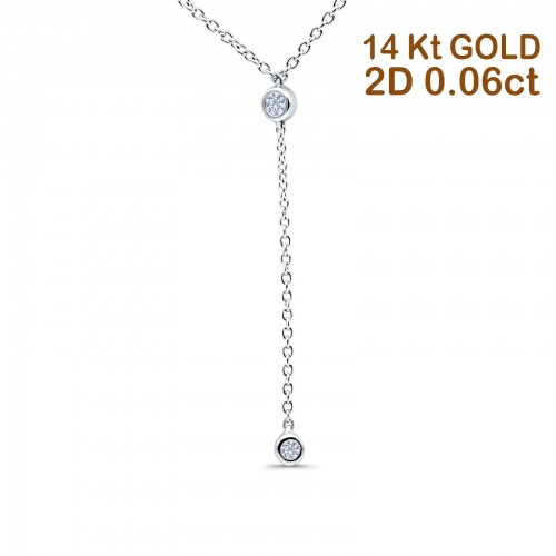 14K Rose Gold 0.06ct Round Shape Diamond Drop Lariat Pendant Chain Necklace 18″ Long