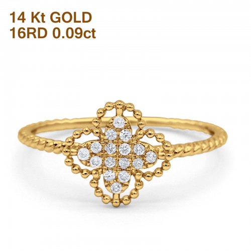 14K Rose Gold 0.09ct Round 9.5mm G SI Diamond Quatrefoil Flower Engagement Wedding Ring Size 6.5