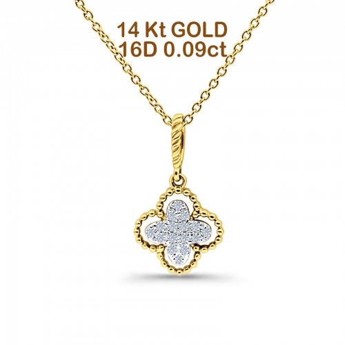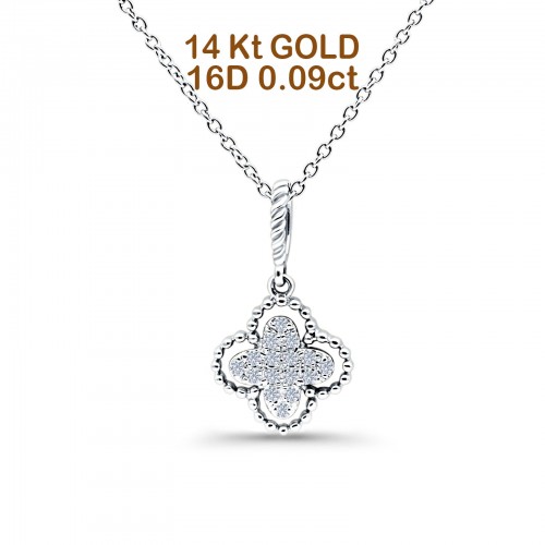 14K Rose Gold 0.09ct Round Shape Diamond Antique Flower Pendant Chain Necklace 18″ Long