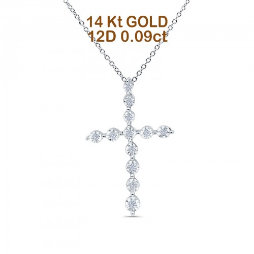 14K Rose Gold 0.09ct Round Shape Diamond Cross Pendant Chain Necklace 18″ Long