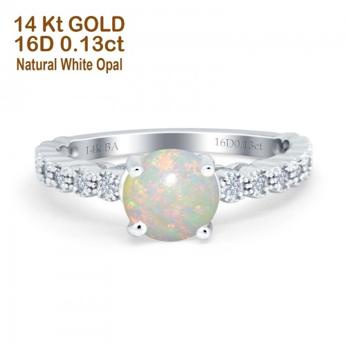 14K Rose Gold 0.13ct Round 6.5mm G SI Natural White Opal Diamond Engagement Wedding Ring Size 6.5