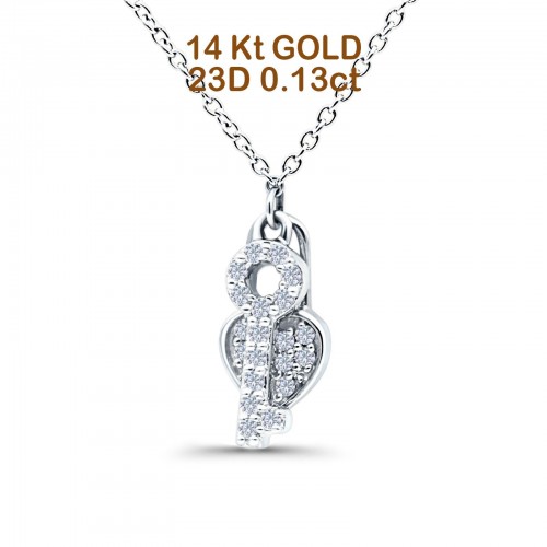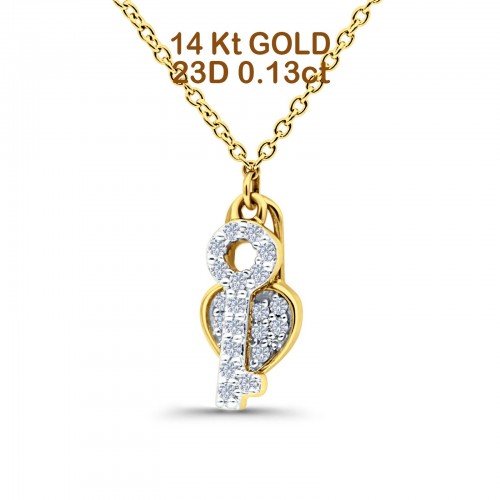 14K Rose Gold 0.13ct Round Shape Diamond Key To My Heart Pendant Chain Necklace 18″ Long