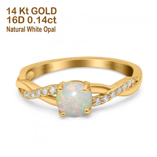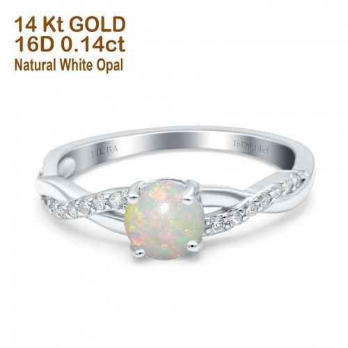 14K Rose Gold 0.14ct Round Art Deco 6mm G SI Natural White Opal Diamond Engagement Wedding Ring Size 6.5