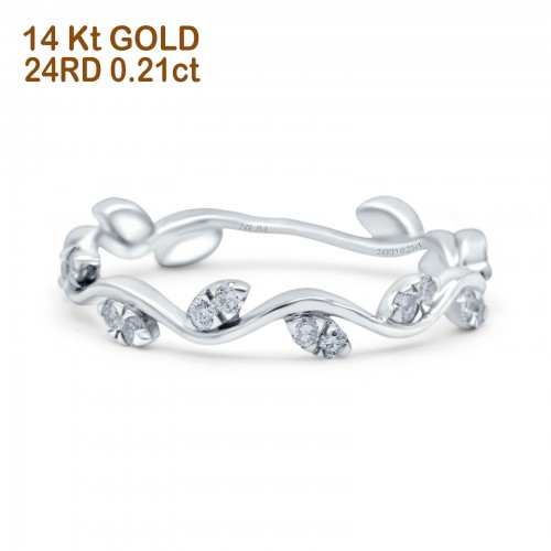 14K Rose Gold 0.21ct Round Pave 4mm Band G SI Leaf Eternity Diamond Engagement Wedding Ring Size 6.5