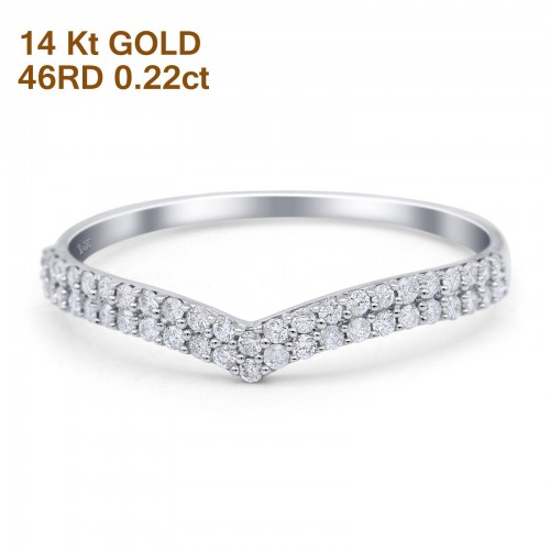 14K Rose Gold 0.22ct Round 2mm G SI V Shape Chevron Diamond Eternity Bands Engagement Wedding Ring Size 6.5