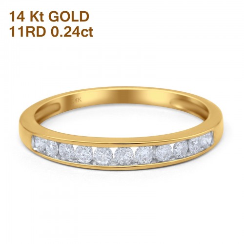 14K Rose Gold 0.24ct Round 3mm G SI Diamond Channel Set Half Eternity Engagement Wedding Ring Size 6.5