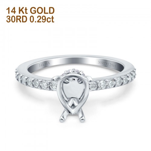 14K Rose Gold 0.29ct Teardrop Pear Art Deco 8mmx6mm G SI Semi Mount Diamond Engagement Wedding Ring Size 6.5