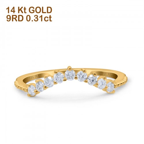14K Rose Gold 0.31ct Round Midi Curved Art Deco 4.5mm G SI Half Eternity Diamond Band Engagement Wedding Ring Size 6.5