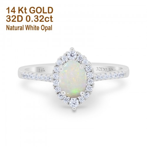 14K Rose Gold 0.32ct Oval Natural White Opal G SI Diamond Engagement Ring Size 6.5