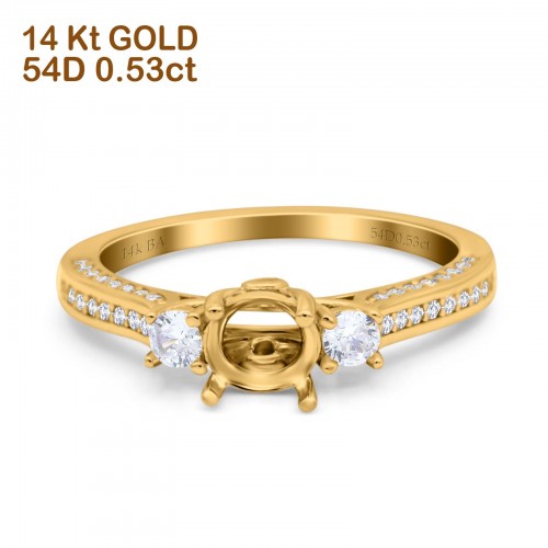 14K Rose Gold 0.53ct Round Three Stone Vintage 6mm G SI Semi Mount Diamond Engagement Wedding Ring Size 6.5