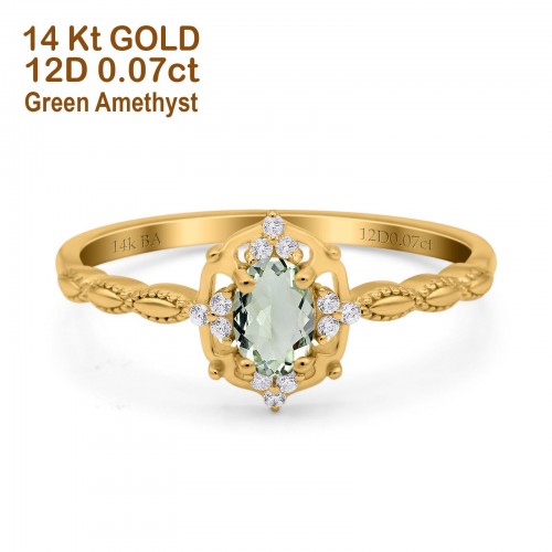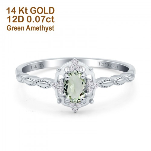 14K Rose Gold 0.5ct Oval Vintage Floral 6mmx4mm G SI Natural Green Amethyst Diamond Engagement Wedding Ring Size 6.5