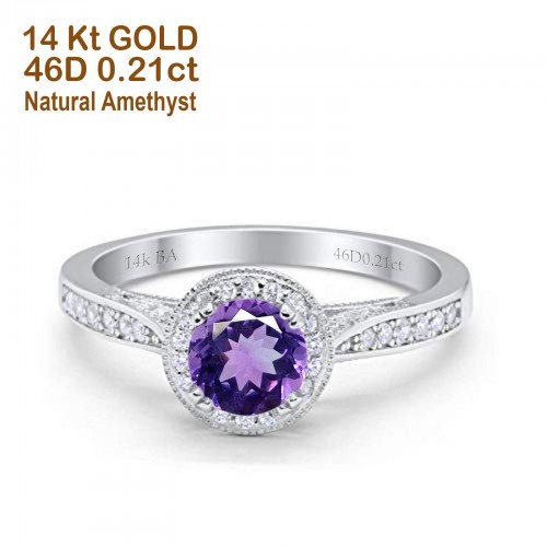 14K Rose Gold 0.67ct Round Halo 6.5mm G SI Natural Amethyst Diamond Engagement Wedding Ring Size 6.5