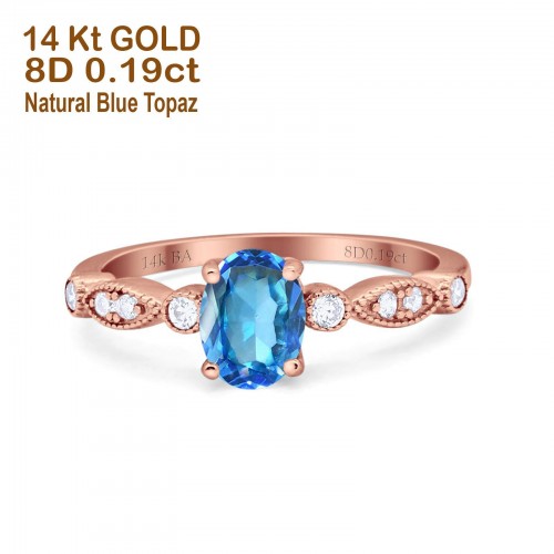 14K Rose Gold 0.69ct Round Art Deco 5mm G SI London Blue Topaz Diamond Engagement Wedding Ring Size 6.5