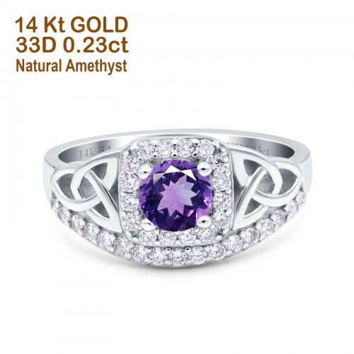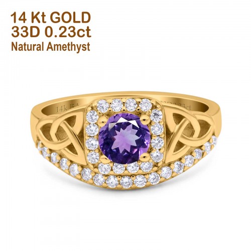 14K Rose Gold 0.69ct Round Art Deco 5mm G SI Natural Amethyst Diamond Engagement Wedding Ring Size 6.5