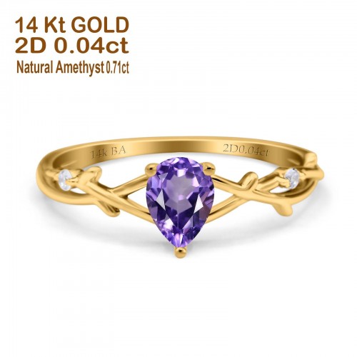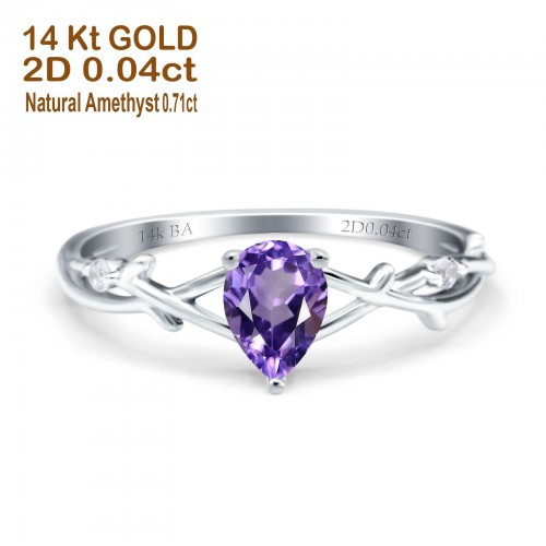14K Rose Gold 0.75ct Natural Amethyst Pear G SI Diamond Engagement Ring Size 6.5