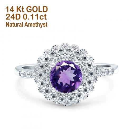 14K Rose Gold 0.77ct Halo Art Deco Round 5.5mm G SI Natural Amethyst Diamond Engagement Wedding Ring Size 6.5