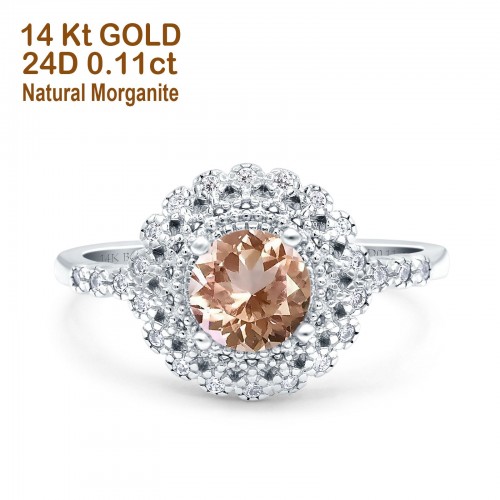14K Rose Gold 0.77ct Halo Art Deco Round 5.5mm G SI Natural Morganite Diamond Engagement Wedding Ring Size 6.5