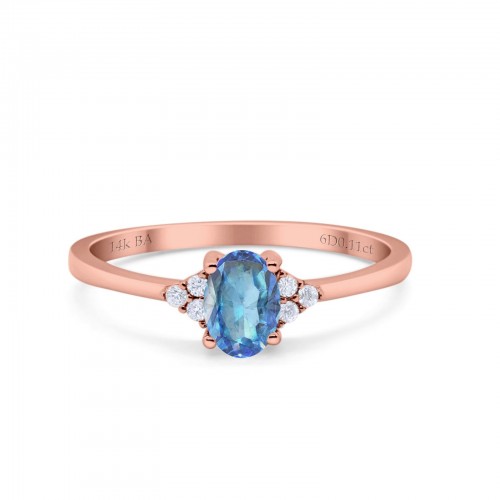 14K Rose Gold 0.87ct Art Deco Oval 7mmx5mm G SI Natural Blue Topaz Diamond Engagement Wedding Ring Size 6.5