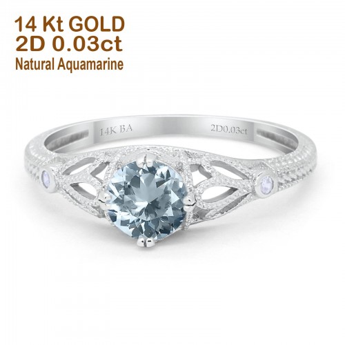14K Rose Gold 0.87ct Vintage Design Solitaire Round 6mm G SI Natural Aquamarine Diamond Engagement Wedding Ring Size 6.5