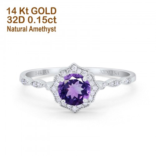 14K Rose Gold 0.99ct Round Petite Dainty 6mm G SI Natural Amethyst Diamond Engagement Wedding Ring Size 6.5