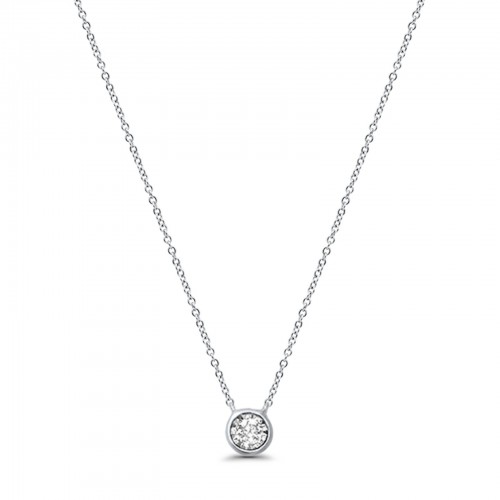 14K Rose Gold .07ct Round Bezel Diamond Solitaire Pendant 18″ Necklace