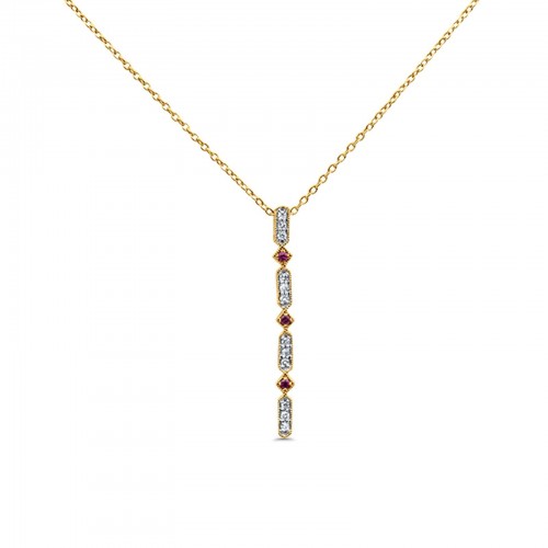 14K Rose Gold .09ct G SI Diamond & Ruby Antique Style Pendant Necklace 18″ Long