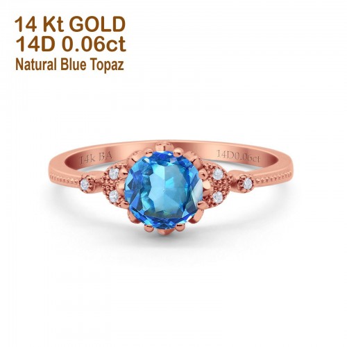 14K Rose Gold 1.05ct Round 6mm G SI London Blue Topaz Diamond Engagement Bridal Wedding Ring Size 6.5
