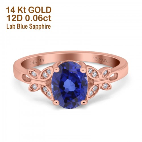 14K Rose Gold 1.11ct Round Art Deco Filigree 6.5mm G SI Natural Blue Topaz Diamond Engagement Wedding Ring Size 6.5