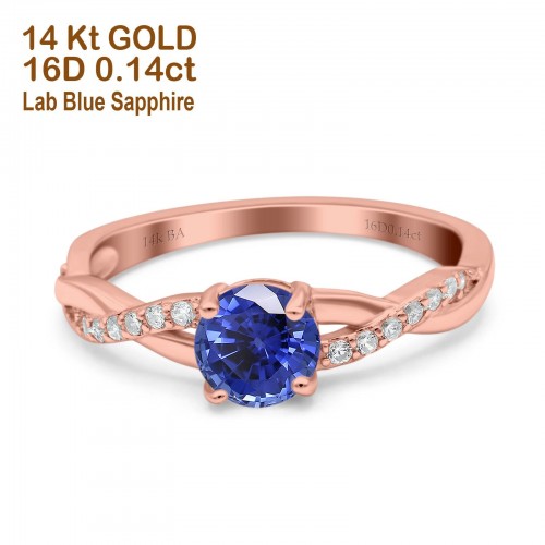 14K Rose Gold 1.14ct Round Accent Vintage 6mm G SI Natural Blue Topaz Diamond Engagement Wedding Ring Size 6.5