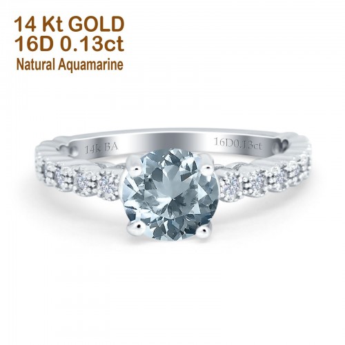 14K Rose Gold 1.16ct Round 6.5mm G SI Natural Aquamarine Diamond Engagement Wedding Ring Size 6.5